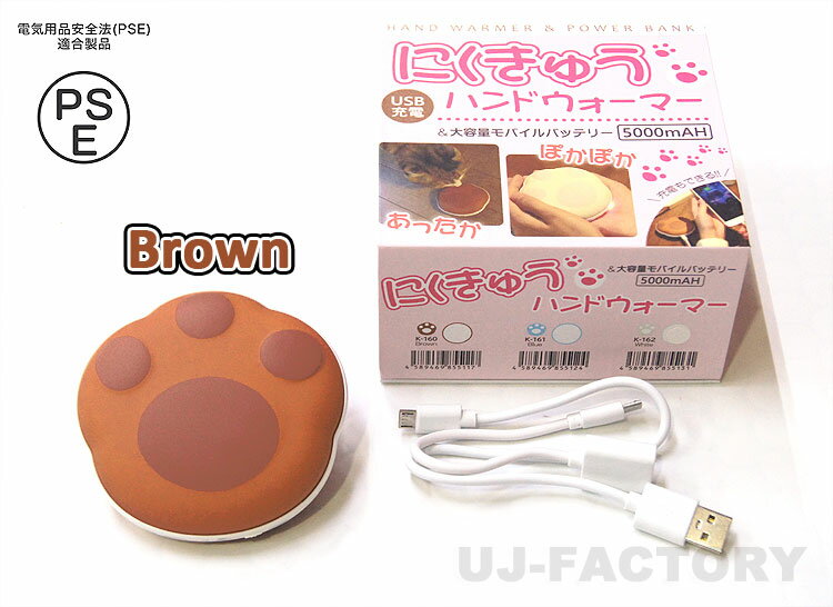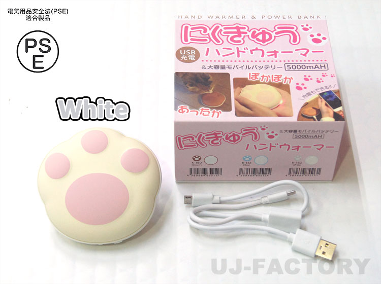 【PSEマーク付】★肉球 ハンドウォーマー★ 大容量モバイルバッテリーにも♪ 5000mAH USB充電 巾着袋付き