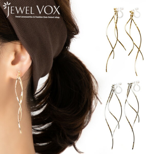 【ネコポス送料無料】 イヤリング ピアスに見える 金属アレルギー対応 ノンホールピアス ニッケルフリー 樹脂 S字 華奢 スティック 日本製オメガ レディース アクセサリー ゴールド レディース ギフト jewelvox 結婚式 大人 上品